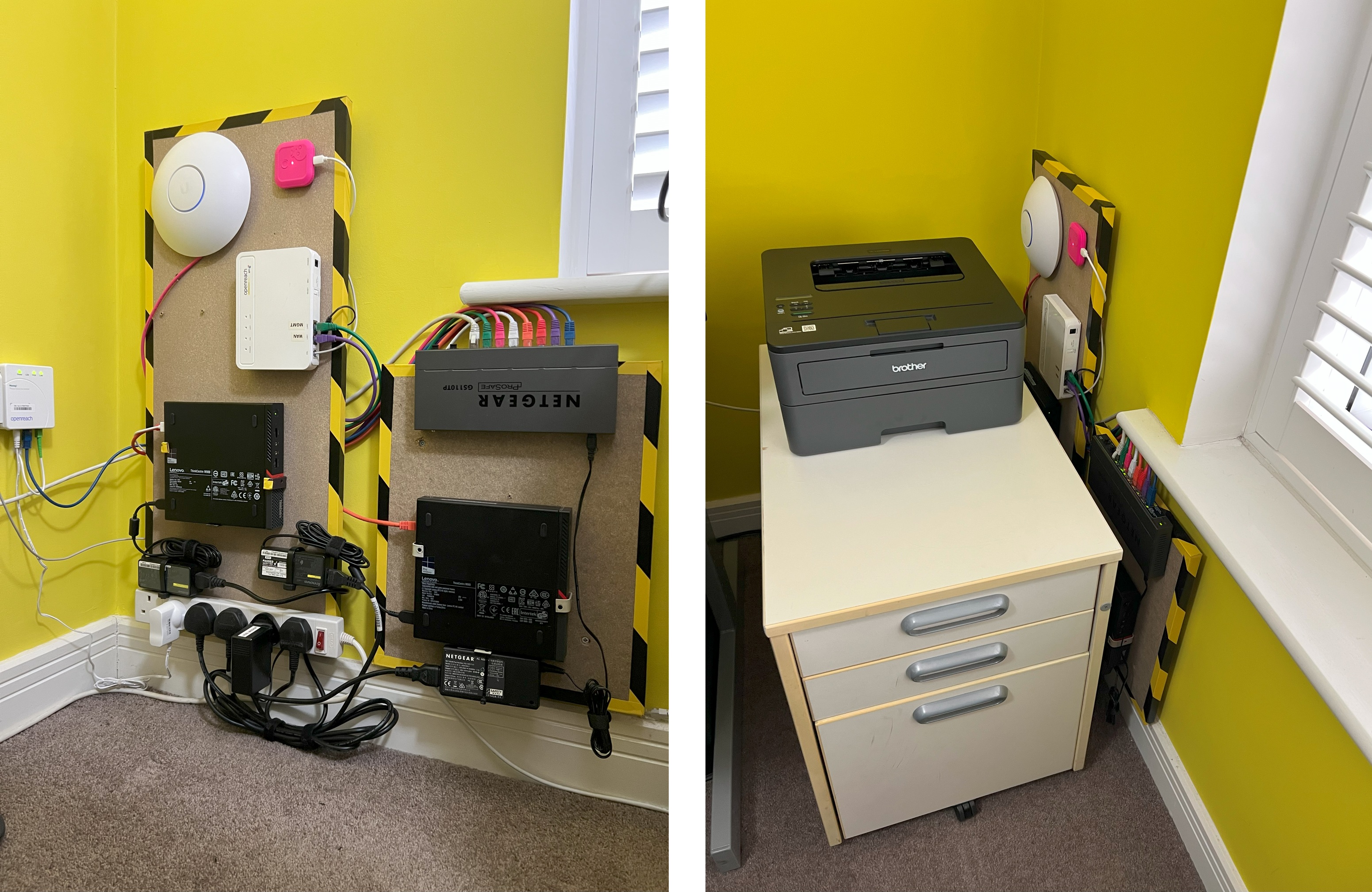 I also took this as an opportunity to tidy up my “home lab” so I got some new patch leads. I’m rather pleased with the end result. With the filing unit and printer in front of it, the whole setup is nicely tucked away and is quite non-intrusive. I run my entire home lab on one Lenovo M900 Tiny with a 6th Gen i7 processor (the old M900 Tiny with the i3 processor is now serving as a spare).